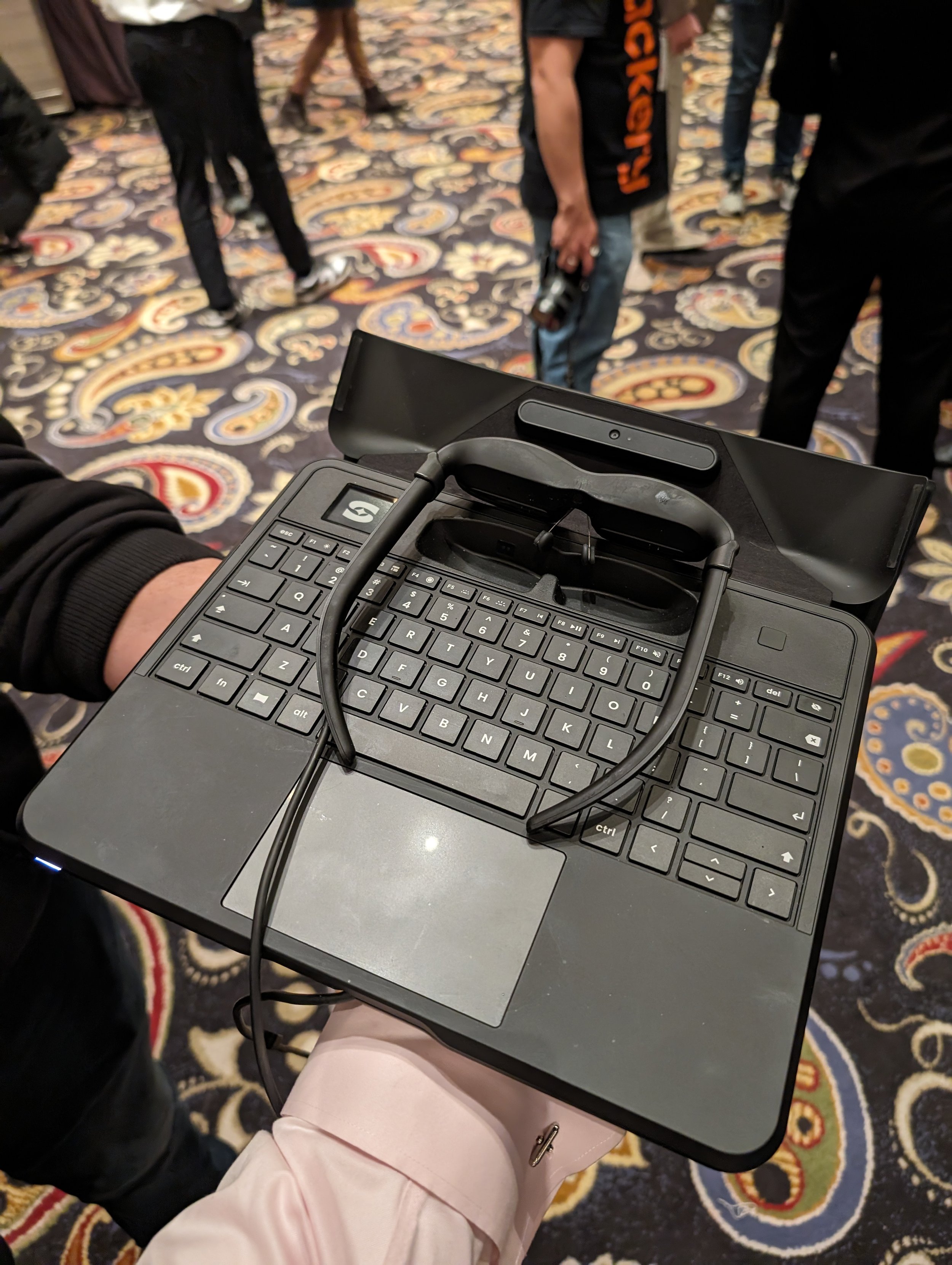The most unusual productivity-oriented wearable at CES had to be the Sightful Spacetop exhibited at Showstoppers. The system tethers glasses-with-a-microdisplay-screen to a laptop base with no screen. The use case mirrors a key Apple Vision Pro demo – creating multiple large, repositionable virtual displays for your computer. In Apple’s case, that’s a MacBook Pro. In Sightful’s case, that’s a 2 lb wedge-shaped 5G device that runs Android and Sightful software. The idea is that you get flexibility, complete privacy, and constant connectivity. The contraption is powered by Qualcomm Snapdragon XR2 and I’m due to get in a review unit.